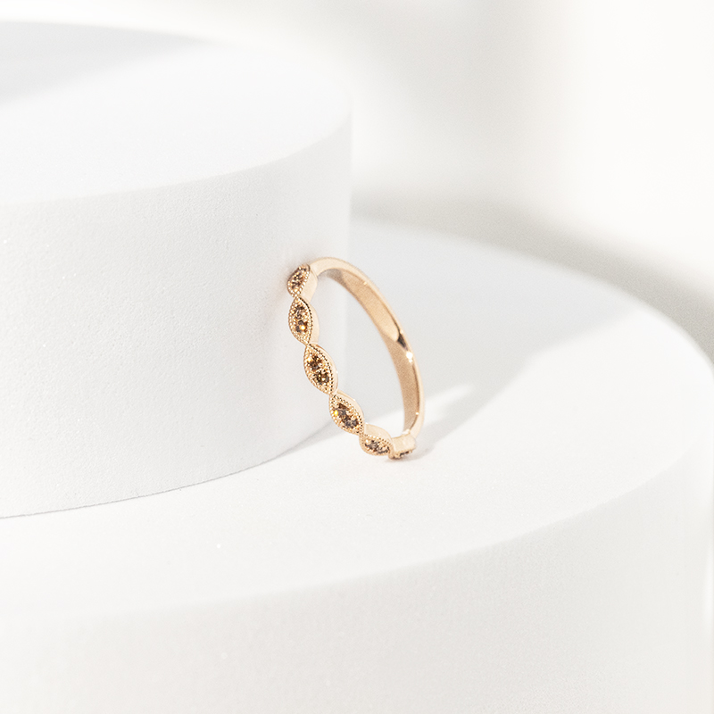 Eternity prstienky z ružového zlata sú zase moderné, romantické a v obklopení farebných drahokamov priťahujú pozornosť hravou eleganciou.