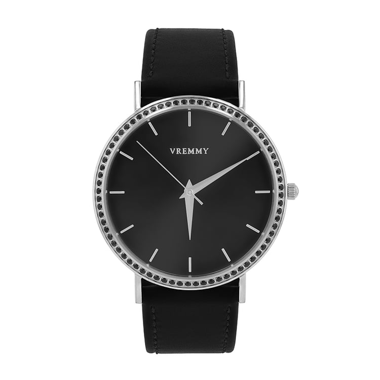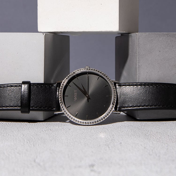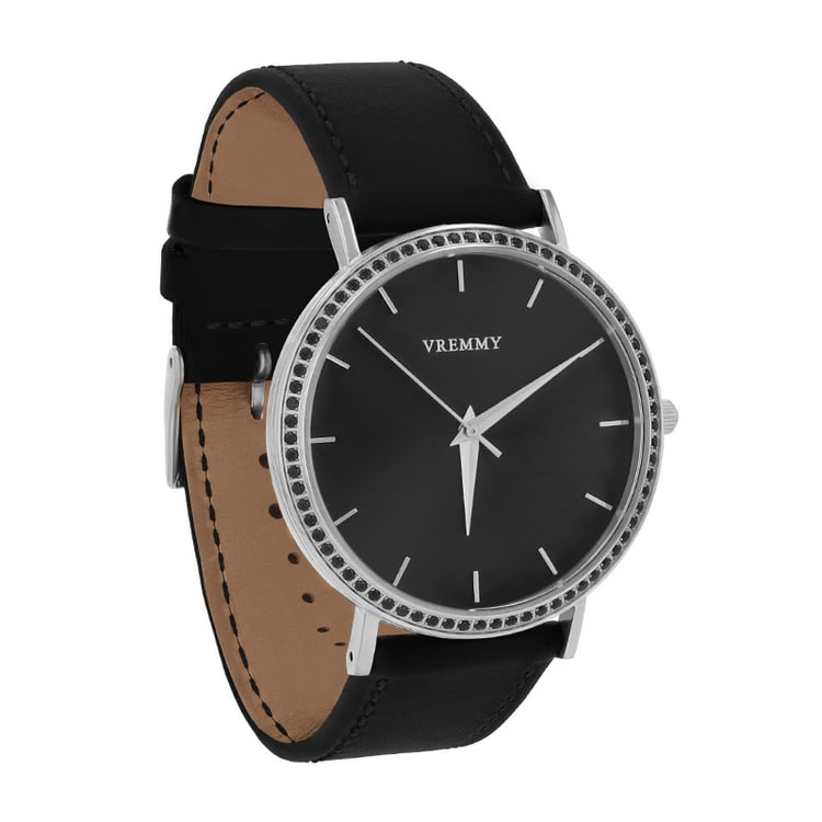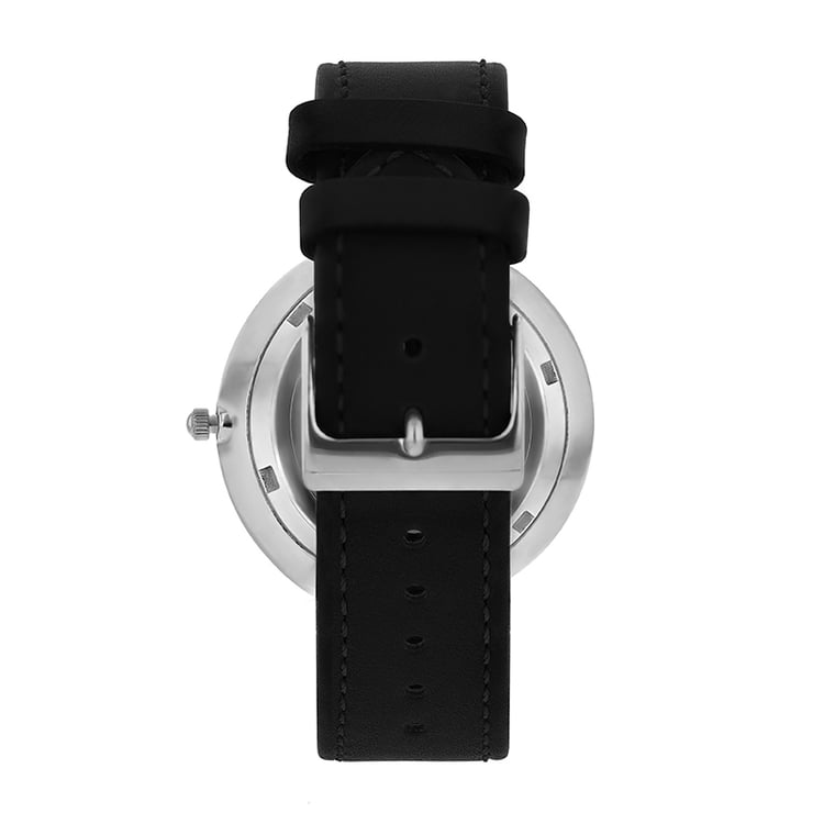 - oceľové puzdro a čierny kožený remienok