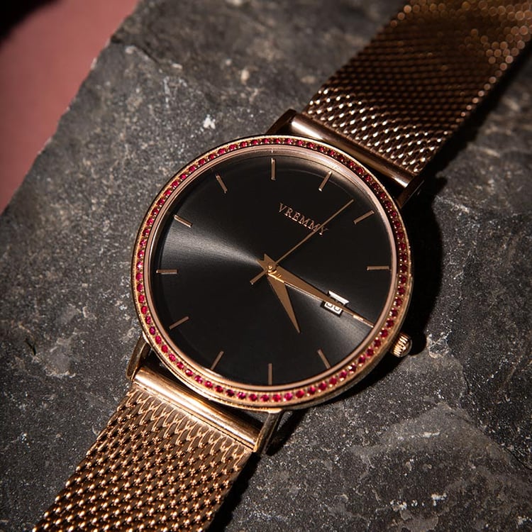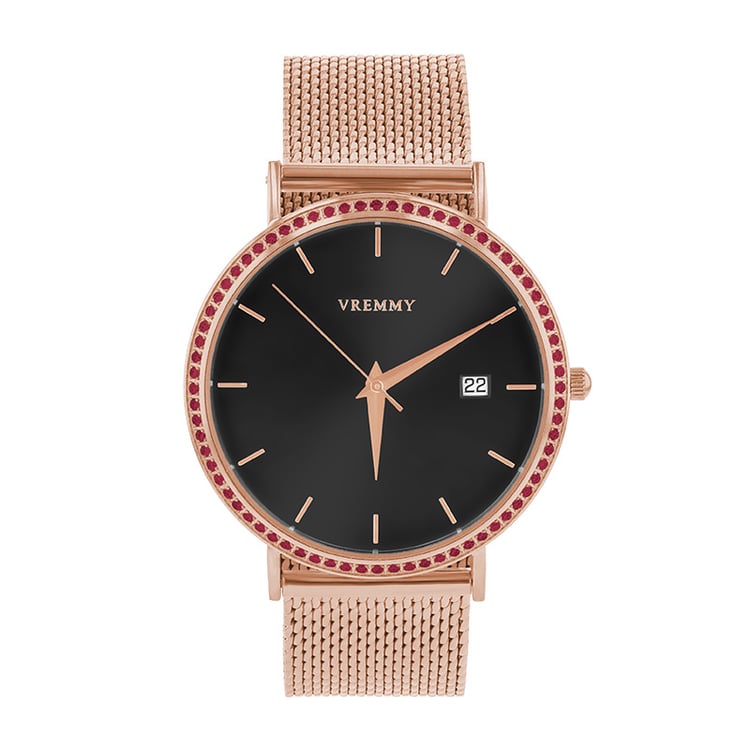 - oceľové puzdro s náramkom v milánskom ťahu vo farbe ružového zlata