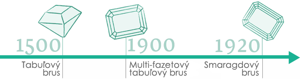 Presný pôvod prvého smaragdového tvaru zostává doposiaľ nejasný, hoci jeho štylistické a technické údaje môžu byť spájané s jednoduchými tabuľovými tvarmi z obdobia Art deca na začiatku 20. storočia. Termín „smaragdový tvar“ sa začal používať až v období Art deca aj napriek skutočnosti, že brúsiči diamantov už poznali rovnaký tvar, ale pod rôznymi menami. Pôvodne bol tento tvar vyvinutý špeciálne pre smaragdové drahokamy s cieľom znížiť množstvo tlaku pri rezaní, a ochrániť tak drahokam pred prasknutím. Čoskoro si však brusiči uvedomili význam tohto rezu a začali ho aplikovať aj na diamanty.