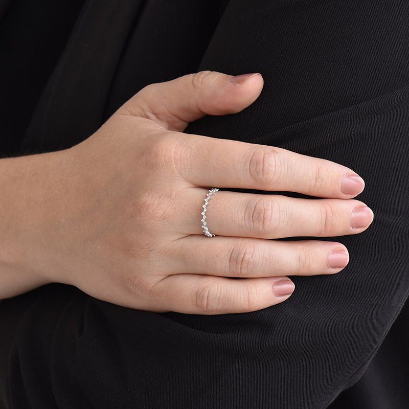 Ako eternity prsteň sa označuje krúžok osadený diamantmi či inými drahokamami, a to buď po polovici jeho obvodu, alebo kompletne, dookola. Drahé kamene sú spravidla vybrúsené do totožného tvaru a v obrúčke z ušľachtilého kovu sú zasadené tesne za sebou. Výsledné dizajny sú rozhodne luxusné a na prvý pohľad zaujmú.